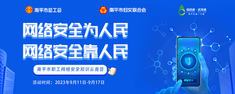 為深入學習宣傳貫徹黨的二十大精神和習近平總書記關于網絡強國的重要思想,宣傳貫徹習近平總書記對網絡安全工作的“四個堅持”的重要精神,宣傳普及《網絡安全法》《數據安全法》《個人信息保護法》等法律法規,在2023年網絡安全宣傳周期間,南平市總工會、南平市婦女聯合會聯合開展“網絡安全知識云競答”活動,在職工中營造共筑網絡安全防線的濃厚氛圍。