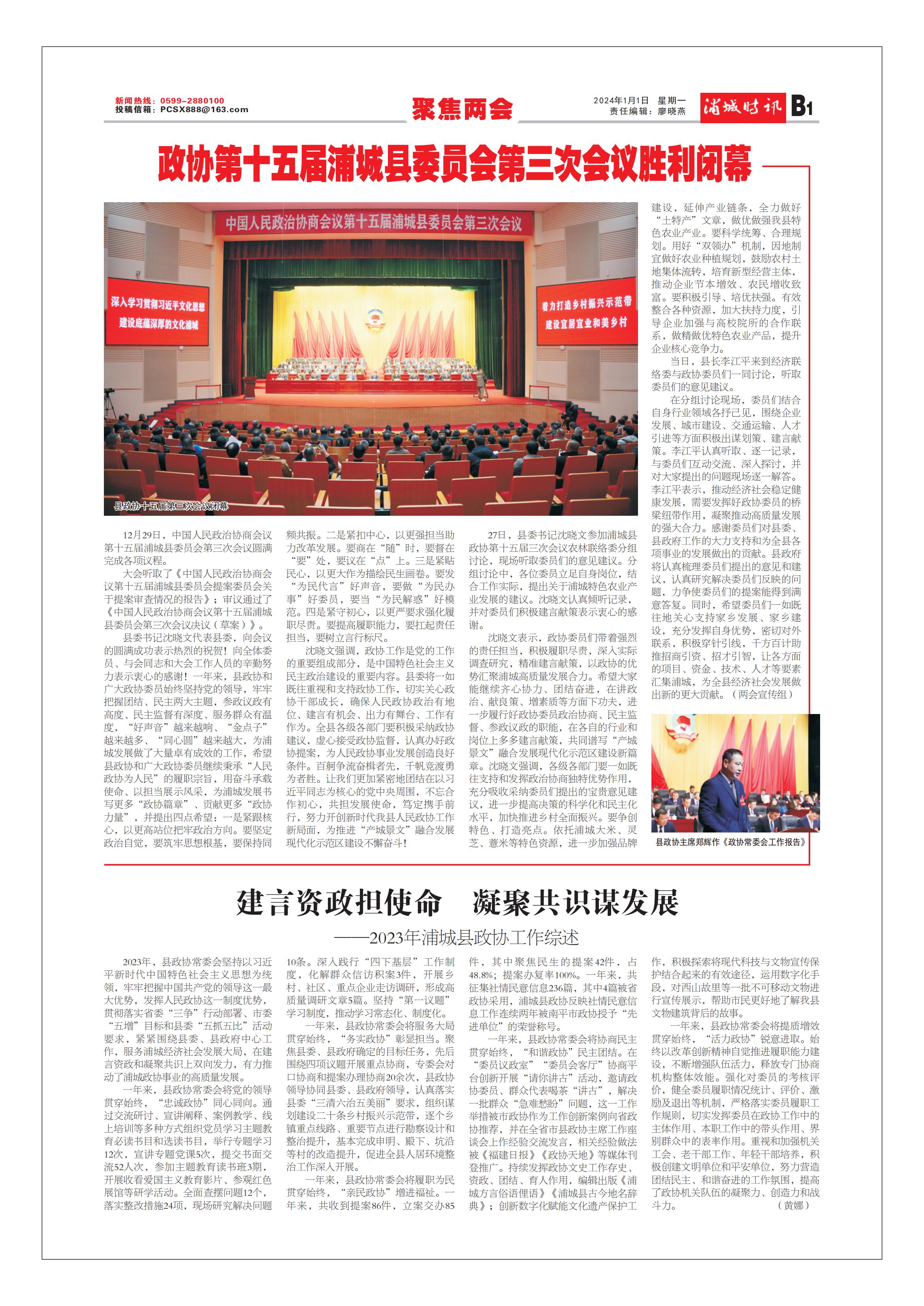 | 2024-01-24 15:41:44??來源:浦城新聞 責任編輯:肖練冰 我來說兩句 |