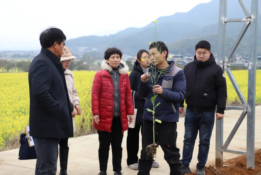 3月1日,浦城縣糧油作物春管和春耕備耕專題培訓會召開,全縣各鄉鎮(街道)農技干部、種植大戶等50余人參加。 觀摩會現場,與會人員深入石陂鎮申明山農米業有限公司的油菜花種植示范片,了解了油菜品種選擇、技術推廣、田間管理等方面的注意事項,探索和推廣產業發展的“好思路”。 據了解,該油菜花種植示范片面積共一千三百畝,其中包含百畝七彩油菜示范片。石陂農技站站長李煒軒介紹,通過黨建引領,有效地帶動農戶,通過統一管理,統一流轉土地,統一購買農資,進行統一種植,確保農戶的種植效益,預計今年油菜效益也會得到大幅度的提升。