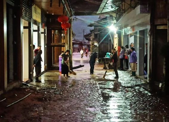 “團結就是力量,這力量是鐵,這力量是鋼……”6月12日晚,浦城縣水北街鎮中坊村街頭傳來一陣陣歌聲,村民們手拿掃把,在泥濘的街道上揮灑汗水,用自己的力量來重整美麗家園。