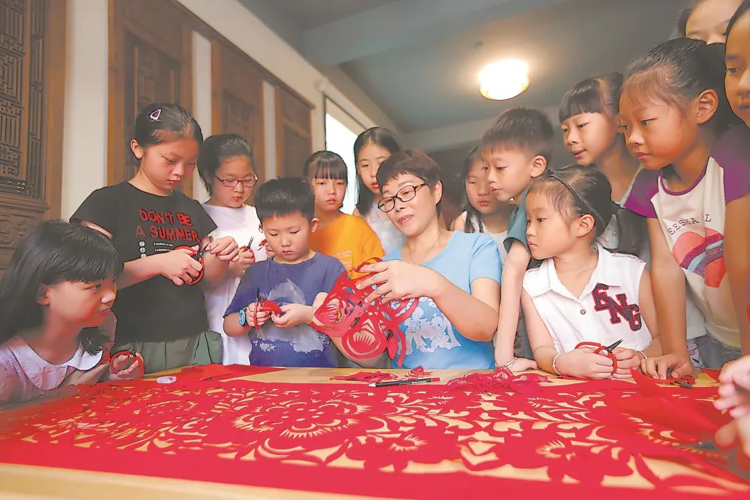 浦城縣利用暑期及周末時間定期開展剪紙公益課。圖為小朋友在學習剪紙。袁野/攝 新“花樣” 浦城剪紙,已有1000余年歷史。它的“出生”,與歷史上的大遷徙有關。 浦城地處福建最北端,與浙江、江西相鄰,歷史上是閩越族活動中心。西晉時,中原士族南遷,北方的剪紙手藝隨之傳入浦城。經過唐、宋的長足發展,元、明興盛繁榮,至清代,藝術水平與使用均達到鼎盛,形成兼具中國北方與南方的風格特色。 清道光年間,寓居浦城的文學家梁章鉅倡導剪紙并加以弘揚。在他的倡導下,吉祥字句轉以吉祥花樣代之,在文人的參與推動下,浦城剪紙創作呈現出既飽含文人氣息又深具文化底蘊、既花樣繁多又內容豐富的特點。 千年流傳,浦城剪紙地域特征明顯,具有很高的歷史研究價值、民俗研究價值、閩越文化研究價值。但是隨著社會的變革,手藝人減少,浦城剪紙瀕臨失傳。 “2003年,浦城縣成立了民間剪紙協會,開始探索創作適合當前審美情趣、富有浦城地域特色的剪紙作品。”浦城縣文化館館長祖碧霞介紹,為了搶救這項民間藝術瑰寶,保存老一輩手中的剪紙“活化石”,工作人員遍訪了各村的剪紙藝人,歷經20多年,建立民間藝人檔案150余人,共收集整理傳統剪紙紋樣2000余張。 如何讓古老的民間剪紙藝術重回人們的視線?當地做了許多嘗試,特別是去年10月,浦城、漳浦、霞浦三地以“浦”為線,共同簽訂“三浦并臻”文化聯盟協議,以共建共贏為理念,努力實現陣地共建、平臺共享、人才共育、品牌共創,浦城剪紙成為受益者。
