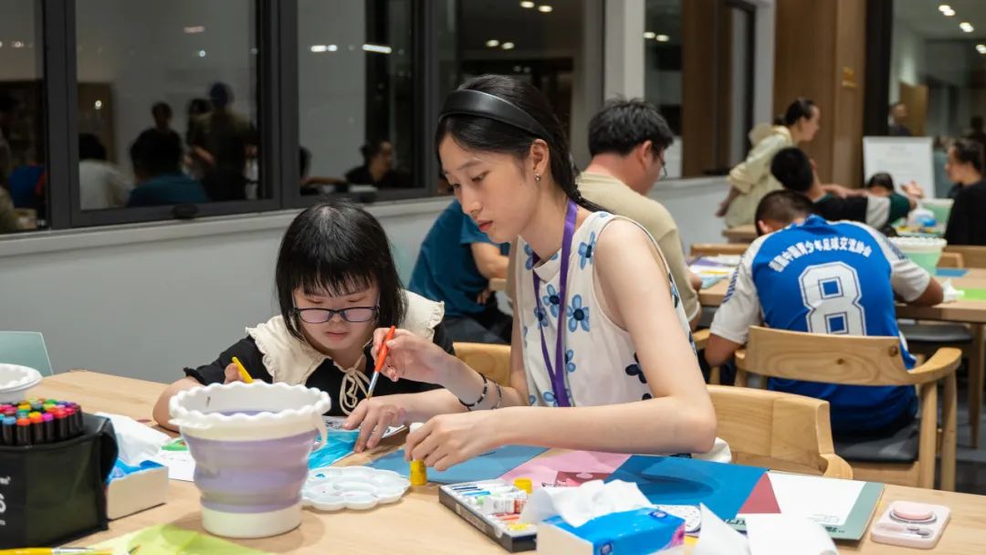 8月13日,浦城美術館/范迪安美術館“夢筆生花”聯動“福至心靈”孤獨癥青少年逐夢計劃,在美育圖書館為大家呈現了一堂別開生面的特殊兒童美育體驗課。 中國美術家協會主席范迪安,中央美術學院教授張路江、王穎生、白曉剛等協同授課,帶領中央美術學院的志愿者劉津序、宋雨奇以及閩港澳臺28名青年美術人才與來自福建省共計22名特殊兒童開展互動創作。