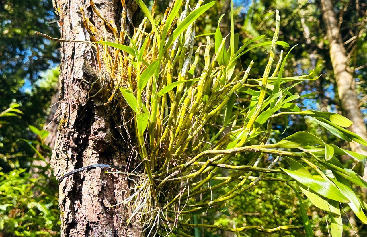 殿下村林下種植仿野生靈芝 “近年來,竹子的經濟價值逐漸提升,但村里年輕人外出務工,老人又上了年紀,竹山長期無人管護雜草叢生,這樣下去價值再高對于當地老百姓來說都是徒勞。”殿下村黨支部書記、主任張培建說,發展林下經濟能實現林地不荒、林農增收、林業增效,實現“多方共贏”。 “林下種植靈芝好處多,例如,林下種植靈芝使用的菌棒,腐爛后能提升土壤有機質,進而促進竹林的生長,等等。”張培建說。 在浦城,像殿下村這樣“借綠”生金的并不少見。2023年,浦城縣的林下經濟涉及的區域面積達114.6萬畝,總產值達15億元,累計建設林下經濟示范基地86個,帶動農戶達3.8萬戶。 守林護林 林地增金 驕陽似火的午后,跟隨浦城深輝家庭林場負責人廖子輝的腳步,記者來到了他的石斛種植基地,只見一叢叢石斛跟猴孫們爬樹似的,攀附在大大小小的杉木上,生長得十分旺盛。