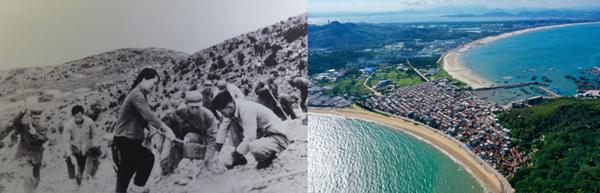 拼版照片:左圖為東山縣群眾在荒山上種植樹苗(資料照片);右圖為2020年6月18日拍攝的東山縣陳城鎮澳角村附近風光(無人機照片,新華社記者 姜克紅 攝)。 如今,兩位縣委書記已故去幾十載。然而,正如習近平總書記在《之江新語》中所寫的那樣,“政聲人去后,民意閑談中”。也正如這一次在谷文昌紀念館,總書記所強調的,“衡量干部業績好不好,關鍵要看老百姓口碑好不好。” 谷文昌紀念館不遠處的空地上,木麻黃高大挺拔,樹旁“富美全靠木麻黃,幸福不忘谷文昌”的大字熠熠生輝;千余公里外,蘭考泡桐成林,匯聚“千頃澄碧”。 人們叫木麻黃為“谷樹”,喚泡桐為“焦桐”。它們是兩位縣委書記用生命澆灌的護民樹,也是共產黨人的精神樹。