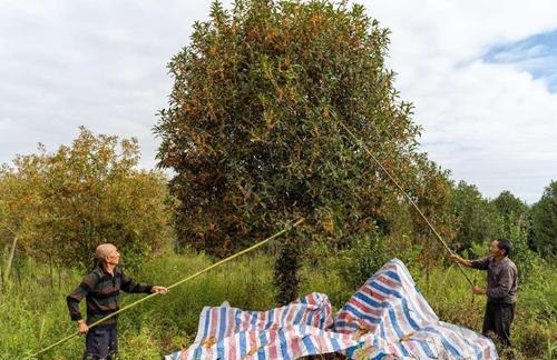 采摘丹桂 夕陽緩緩沉沒在花山之巔,灑下一片金色的余暉。金秋十月,正值浦城丹桂花的采摘季節,在這樣的季節里,茶農們忙碌于丹桂樹間,手捧著朱紅色的花朵,臉上洋溢著豐收的喜悅。剛從杭州舉辦的中國花卉協會桂花分會年會歸來,劉建秋便立即開始為鄉親們送來的桂花進行稱重和核算。只見他熟練地抓起一把桂花,湊近嗅了嗅,滿意地點了點頭。這些桂花經過精心挑選,將被送往茶廠,成為窨制頂級丹桂花茶的關鍵原料。 “目前,我們的產品主要包括丹桂紅茶、丹桂白茶和丹桂烏龍茶。”劉建秋告訴記者,公司每年收購的丹桂花量超3千斤,可帶動當地上百人次增收。“大家的生活水平得到提升,我們的辛勤付出便更有了意義。”