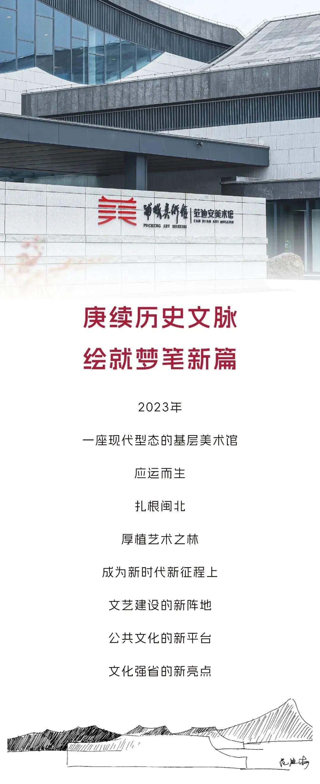 浦城美術館/范迪安美術館 近年來,浦城縣委、縣政府深入貫徹落實習近平文化思想,實施文化強縣戰略,在積極推動新時代經濟社會發展的進程中,高度重視文化基礎設施的組團式布局建設,特別興建了浦城美術館/范迪安美術館這一具有鮮明時代特色的文化藝術地標,為南平市、福建省乃至全國的藝術領域提供了寬廣而開放的交流平臺。 自2023年10月20日正式開館以來,浦城美術館/范迪安美術館以全國規模最大、功能最全縣域美術館之姿,通過舉辦各類展覽、講座、研討會、采風寫生、人才培養、文化交流等活動,整合在地文化、教育、旅游等資源,與地域高校、美術館、出版社等機構建立合作關系,不斷優化公共文化服務和文化產品供給機制,引進優質文化資源直達基層,滿足人民群眾的精神文化需求,成為一道亮麗矚目的人文風景、一座質高恒久的美育家園、一方文旅融合的驅動引擎。