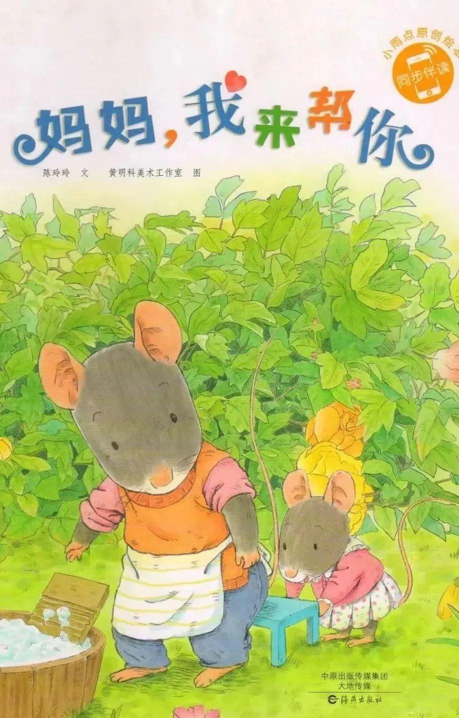 鼠媽媽很忙,很忙…… 要洗衣服,要做飯 要給小老鼠講故事,要給鼠爸爸熨衣服…… 小老鼠很想幫媽媽做事情 媽媽洗衣服的時候,小老鼠跑過來:“媽媽,我來幫你。” “哦,小老鼠,你洗不了衣服,但你可以幫媽媽搬個小凳子,好嗎?”“好的好的,媽媽你等著。”小老鼠搬來一個天藍色的小板凳,放到媽媽的屁股下。 “嗯,這樣舒服多了,謝謝你,小老鼠!” 媽媽做飯的時候,小老鼠跑過來說:“媽媽,我來幫你。” “哦,小老鼠,你還不會做飯,但你可以幫媽媽擦擦汗,好嗎?” “好的好的,媽媽你等著。” 小老鼠拿來毛巾,站在小板凳上,踮起腳尖兒,給媽媽擦去額頭上的汗珠。 “嗯,這樣好多了,謝謝你,小老鼠!” 媽媽拖地的時候,小老鼠跑過來說:“媽媽,我來幫你。” “哦,小老鼠,你還拿不動拖把呢,但你可以給媽媽唱首歌,好嗎?” “好的好的,媽媽你聽著。” 小老鼠拿出一根棒棒糖當麥克風,開心地唱了起來:“我是一只小小的、小小的老鼠……” “啊,小老鼠唱得太好聽了,媽媽一點兒都不覺得累了。” 媽媽織毛衣的時候,小老鼠跑過來說:“媽媽,我來幫你。” “哦,小老鼠,你還不會織毛衣呢?但你可以陪媽媽坐一會兒,好嗎?” “好的好的,媽媽,你織毛衣,我看書。” 呀,小老鼠看見茶幾上的橘子了。 她剝開橘子皮,把最大的一瓣橘子送到媽媽嘴里邊。 “啊,小老鼠剝的橘子可真甜吶!”媽媽說。 小老鼠很愛自己的媽媽。她給媽媽捶背;幫媽媽剝豆子;幫媽媽打掃房間;幫媽媽澆花。 小老鼠拉著媽媽的手說:“媽媽,等我長大了,我會幫你干更多的事情了!” 鼠媽媽什么也沒有說,她給小老鼠一個大大的擁抱和一個甜甜的吻。 小朋友們 繪本中的小老鼠雖然年紀小 力量有限 但仍然非常渴望幫助 忙碌的鼠媽媽做家務 表達對媽媽的愛 所以,我們在日常生活中 也要學會做一些力所能及的事情 幫助爸爸媽媽 學會感恩 |