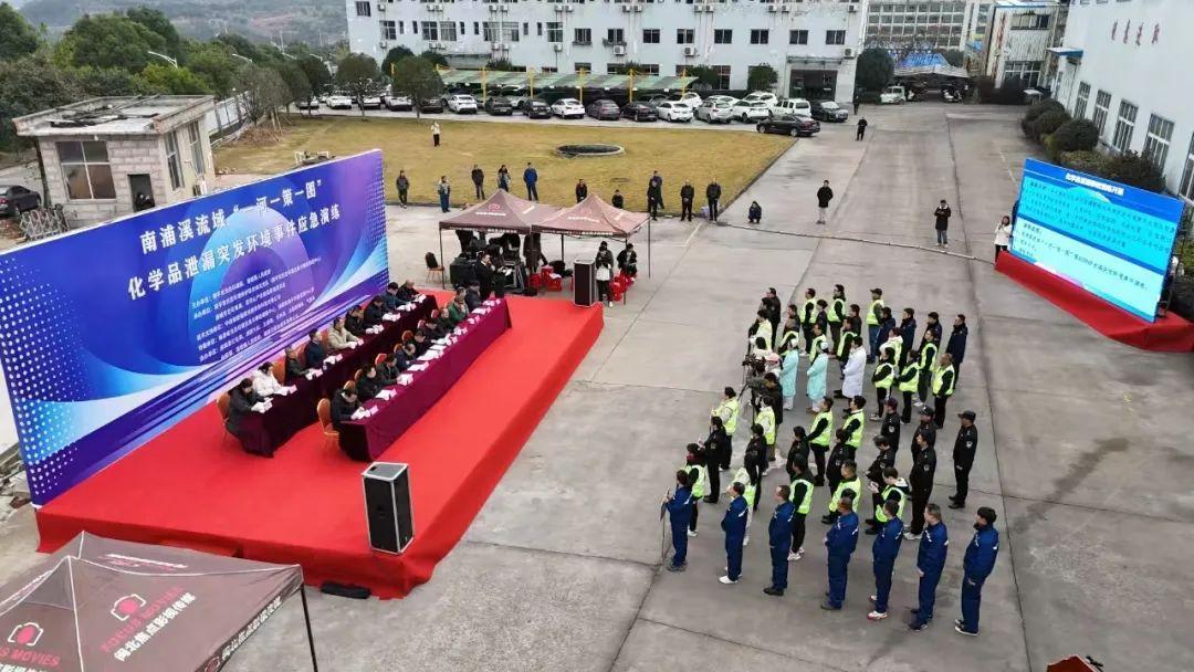 12月12日,南浦溪流域“一河一策一圖”化學品泄漏突發環境事件應急演練在榮華山產業組團舉行。南平市生態環境局副局長李典洪、縣人民政府副縣長傅禮輝,縣委宣傳部、公安局、消防救援大隊工作人員及相關救援力量100余人參加演練。福建省生態環境應急與事故調查中心及福建省環境監測站南平市站專家們觀摩演練。