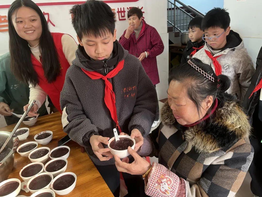 為管厝村的老人們精心熬制臘八粥 管厝學校紅領巾志愿者們為老人們一一端送,這不僅是對中華優秀傳統文化的弘揚,也是對優良家風文化的傳承?,F場老人們喝著臘八粥,臉上洋溢著幸福的笑容。(蔡璇) |