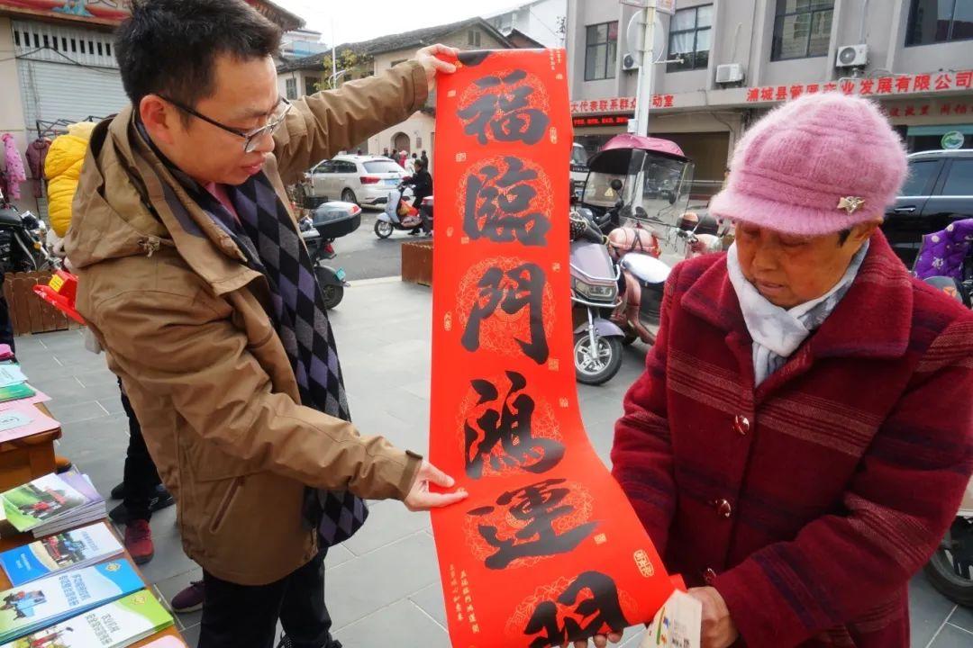 活動中,通過向來往群眾宣傳優良家風文化、道路交通安全、“平安三率”、日常防火用電安全、消防安全、食品藥品安全、全民健康網格化、家庭醫生、健康生活、關心關愛特殊家庭等,進一步弘揚新風正氣,深入開展“三正”主題活動,提高群眾日常生活安全意識,提升群眾對平安建設知曉率。當天,發放傳單、宣傳冊500余份,300余群眾到廖俊波家風家教展示館參觀打卡。 筆墨飄香 暖心送福 活動中,邀請書法老師到現場揮毫潑墨,筆走龍蛇,將美好的祝愿和傳統的年味凝聚于紅紙之上,化作一幅幅寓意吉祥、充滿喜慶的春聯?,F場群眾們熱情高漲,紛紛請老師幫忙書寫自己心儀的新年楹聯。
