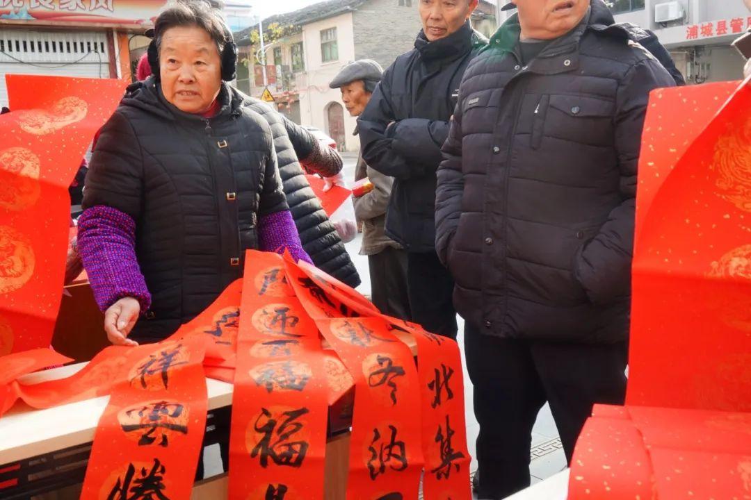 為滿足群眾多樣化的需求,志愿者們還同步發放成品自粘春聯供群眾選擇,群眾們邊欣賞春聯精妙的創作過程,一邊挑選中意的春聯。7日上午,共計送出春聯220余副,讓管厝群眾深深感受到來自管厝鄉黨委、政府的溫暖與關懷。