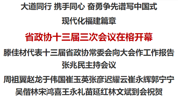 凝心聚力擔重任,奮楫篤行建新功。12日上午,省政協十三屆三次會議在福州開幕。