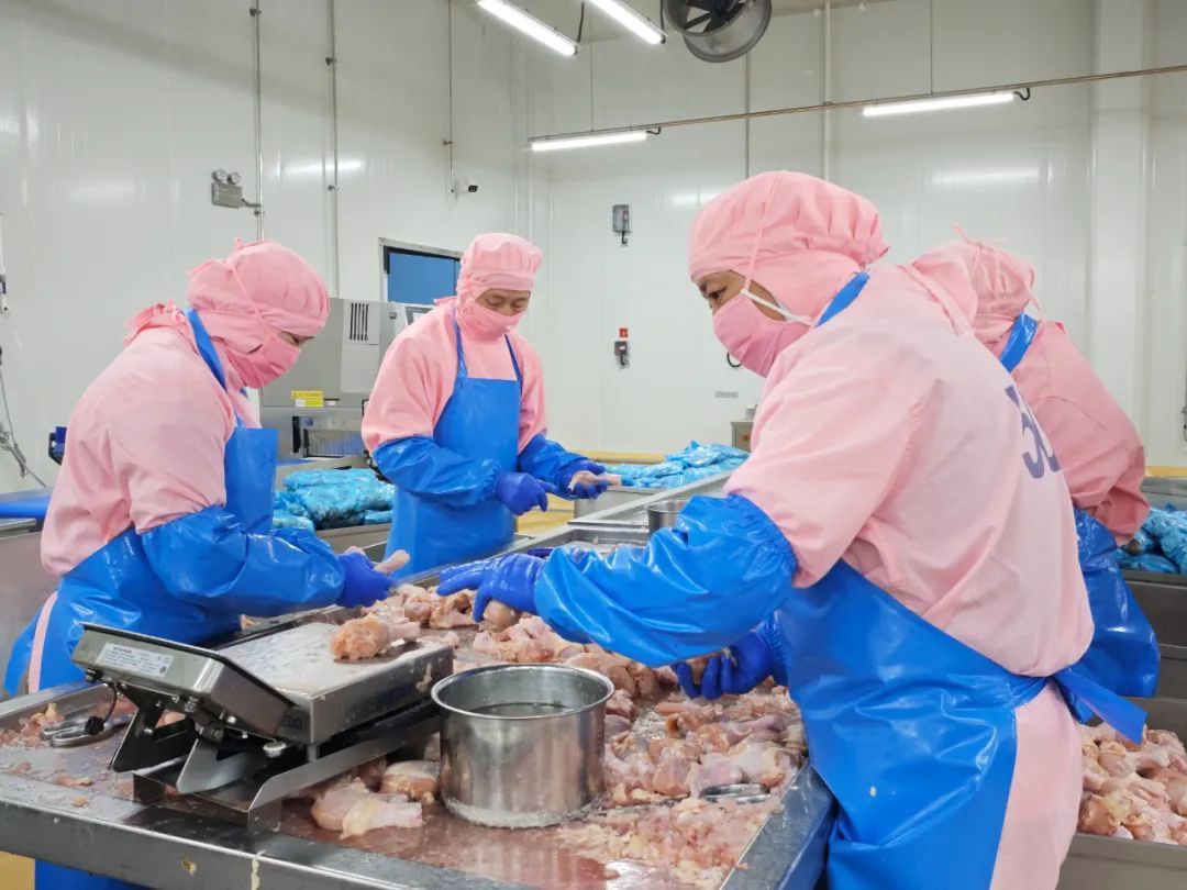 工人們正在熟練地進行食品加工 記者在食品加工二廠看到,工人們正在熟練地進行腌制、上漿、分揀等加工工序,炸雞翅、手槍腿等產品源源不斷產出。“我們企業因為過年期間有山姆、樸樸等許多大客戶訂單,所以過年期間也沒有停產。”公司總經理助理張濤濤說,相關部門提前謀劃,在政策支持、資金補助、員工返崗等方面給予了全面支持,目前企業產能已經達到80%,后續的各類訂單也是源源不斷,正在全力沖刺一季度“開門紅。” 據悉,針對圣農公司這樣的重點企業,浦城縣在節前就出臺了拓崗穩工穩產就業十條措施,組建了服務專班,提前研判,一對一跟進,全力幫助企業做好生產原料儲備、設備檢修、產品訂單、職工返崗、技術培訓等復工復產措施。截至2月9日(正月十二),全縣累計開工企業98家,復產率達88.29%。(袁野 王睿欽) |