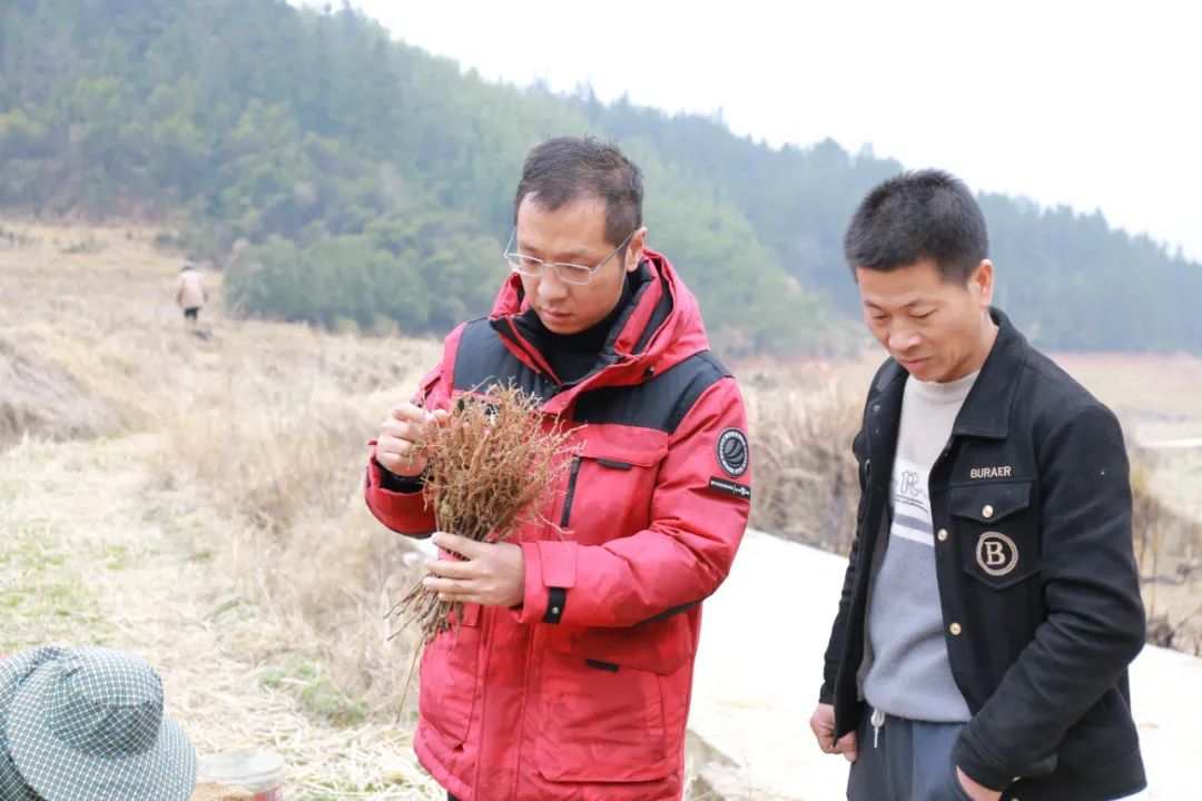 吳鑫鋮(左)在“糧藥”套種基地查看銀杏苗 “銀杏苗種下去,要注意做好適度補(bǔ)水及后期管護(hù)工作?!?月14日一早,在管厝村的“糧藥”套種基地,吳鑫鋮一邊向村民了解撂荒地整治情況,一邊叮囑著銀杏苗種下去的管護(hù)要點(diǎn)。去年,由浦城縣管厝產(chǎn)業(yè)發(fā)展有限公司牽頭,共完成了全鄉(xiāng)700余畝撂荒地整治,并與禾豐農(nóng)業(yè)公司合作,通過“糧藥”套種的方式種植矮化銀杏?!邦A(yù)計(jì)2025年底,可采摘銀杏鮮葉75萬斤,按1.5元/斤收購價(jià)計(jì)算,預(yù)計(jì)可實(shí)現(xiàn)收入112萬元。”吳鑫鋮說,根據(jù)三方合作協(xié)議約定,收成后禾豐農(nóng)業(yè)公司和管厝鄉(xiāng)振興公司分別可享有15%的收益,其余70%的收益則由相關(guān)村黨支部領(lǐng)辦的合作社享有,如果管護(hù)到位,下一年產(chǎn)量和收益還能有所增長(zhǎng)。