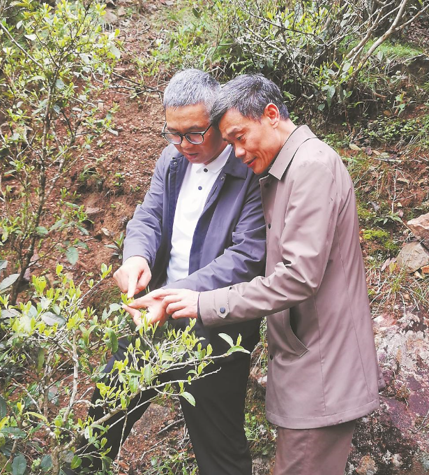 福建省農科院茶葉專家在觀察茶樹生長情況。 本版圖片均由受訪者提供 |