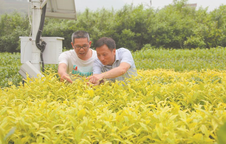 福建省農科院茶葉專家在觀察黃化茶生長情況。