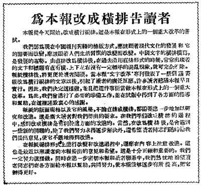 中國人民政治協商會議第一屆全體會議會場。圖源:共產黨員網 1952年2月5日,郭沫若、胡愈之等在中國文字改革研委會上也提出了中文“必須自左而右地橫行”的建議。 在這些著名人士的共同推動下,1955年1月1日,《光明日報》將豎排版改變為橫排版,率先試行漢字由從上到下的豎排,改為從左到右的橫排印刷。