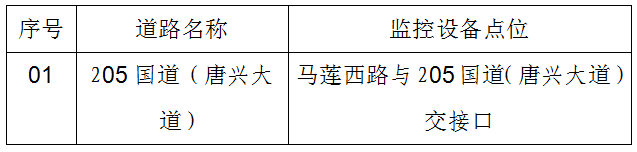 關(guān)于馬蓮西路與205國(guó)道(唐興大道)交接口中間道路綠化帶新增臨時(shí)監(jiān)控設(shè)備啟用的公告