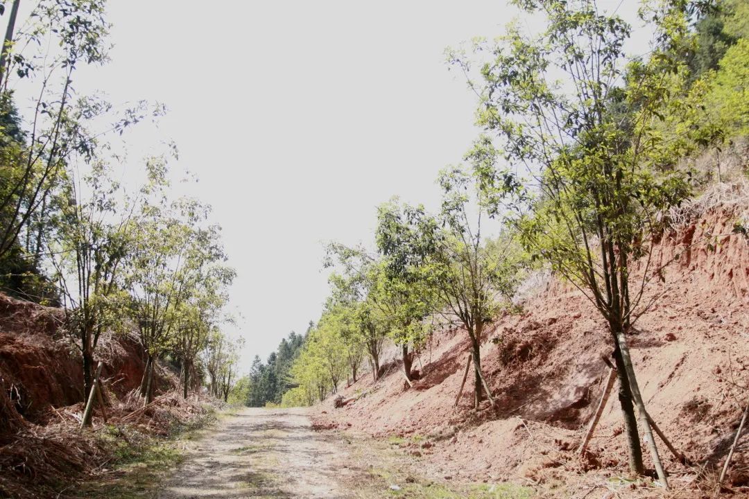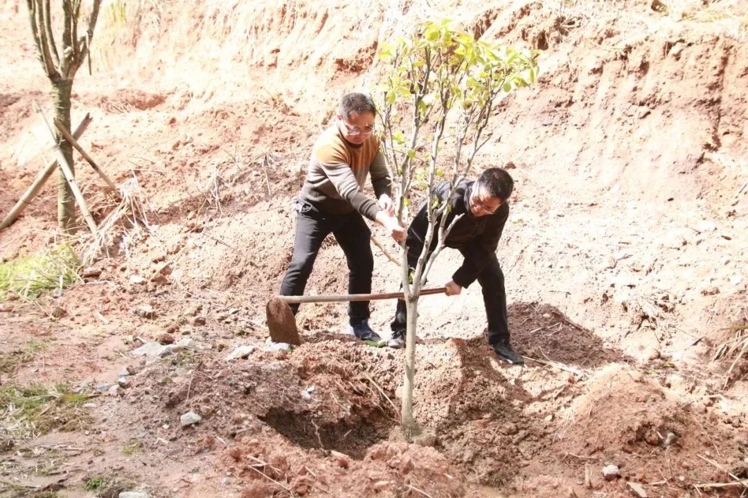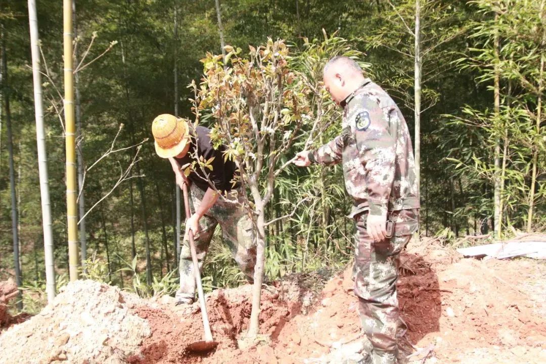 植樹現場 植樹現場,一片熱火朝天的景象。大家熱情高漲,分工明確,配合默契。有的揮鍬鏟土,動作嫻熟有力;有的小心翼翼地扶苗填坑,每一個環節都做得認真細致。在大家共同努力下,原本空曠的土地上,整齊地排列著一棵棵充滿生機的梨樹苗與桂花樹苗,它們在春風中輕輕搖曳,仿佛在訴說著對未來的憧憬。本次植樹活動共種植梨樹和桂花樹10畝,約360株。 唐貞元七年(791年),林藻與其弟林蘊聯袂進京趕考,在梨嶺嶺頭各折桂題詩:“曾向嶺頭題姓字,不穿楊葉不言歸。弟兄各折一枝桂,還向嶺頭聯影飛。”故而又稱“折桂嶺”。梨樹開花時,千朵萬朵素潔淡雅,玉骨冰肌有“占斷天下白,壓盡人間花”之氣勢;桂花則以其馥郁的芬芳聞名遐邇,更為梨嶺關增添一份獨特的韻味與浪漫氣息。展望來年,梨嶺關必將迎來一幅美不勝收的景象:春季,梨樹開花,滿樹潔白,如同雪花漫天飛舞;秋季,丹桂飄香,沁人心脾,梨樹枝頭果實累累,壓彎了枝頭。