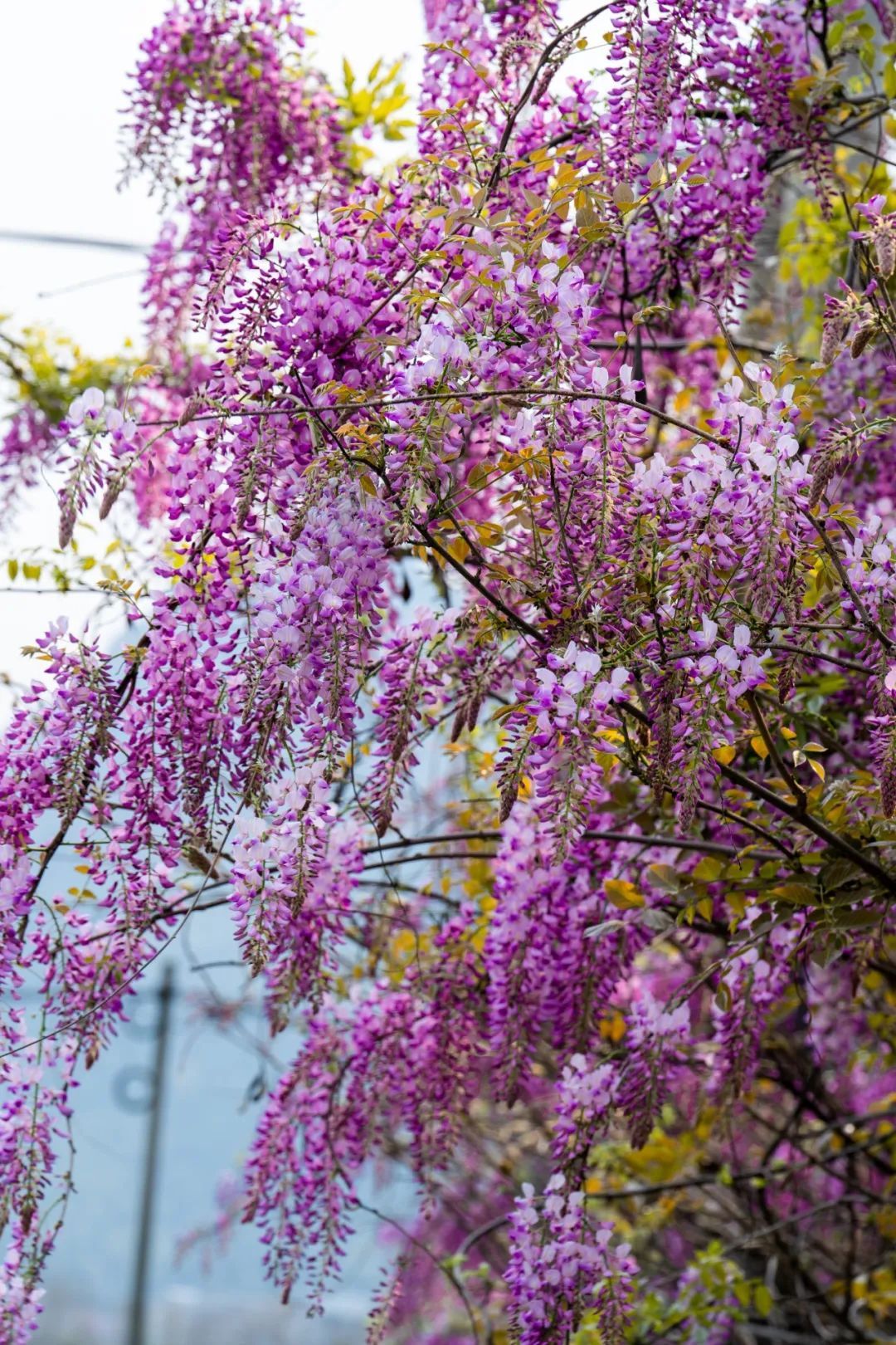 圖源|@潘駿楊 抬眼望去,紫藤蘿花從枝頭垂下,像是大自然精心編織的紫色瀑布,一串串、一簇簇,層層疊疊,肆意蔓延。微風輕拂,“瀑布” 泛起漣漪,花朵相互摩挲,發出沙沙細語,好像在悄悄訴說著春日的情話。 花影綽約 打卡點大揭秘