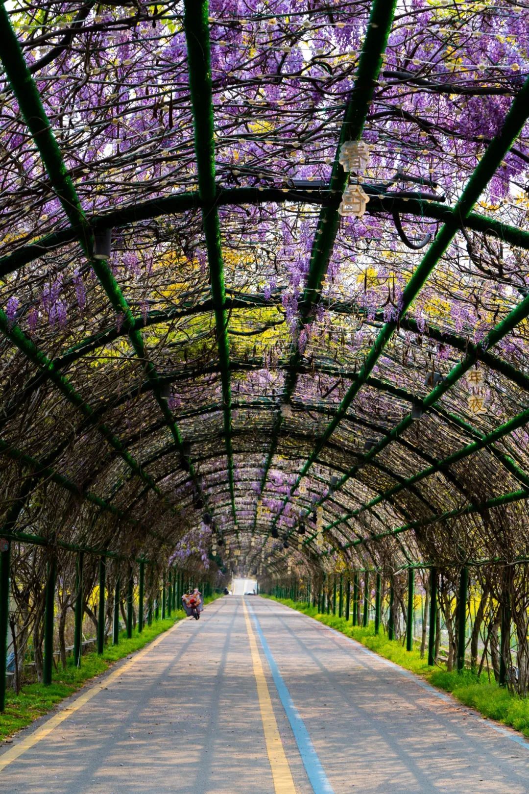 還有那花間小道,漫步其中,頭頂是交織的花蔓,腳下是飄落的花瓣,就像走在一條通往童話世界的花路。別忘了和同伴來張搞怪合影,在這浪漫花景的襯托下,你們的歡樂瞬間會被定格得更加美好。 紫藤蘿
