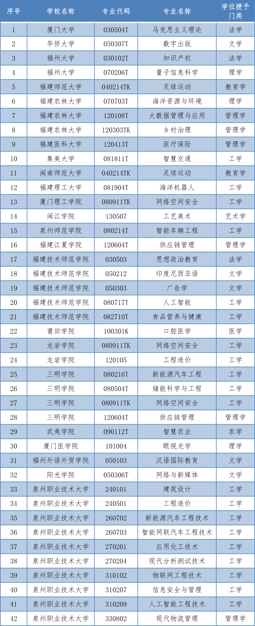 福建新增42個(gè)學(xué)士學(xué)位授權(quán)專業(yè)
