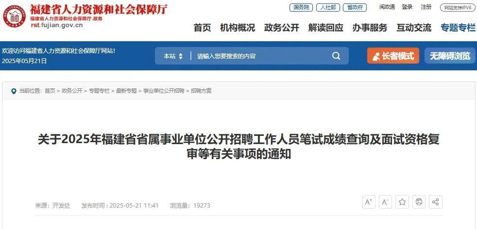 根據(jù)《2025年福建省省屬事業(yè)單位公開招聘工作人員方案(一)(二)(三)(四)》(以下簡稱《方案(一)(二)(三)(四)》)要求,現(xiàn)將筆試成績查詢及面試資格復(fù)審等有關(guān)事項通知如下: 一、筆試成績查詢 1.2025年福建省省屬事業(yè)單位公開招聘工作人員筆試成績已公布,考生可登錄福建就業(yè)網(wǎng)(www.fj99.org.cn)查詢成績。 2.確認(rèn)《方案(一)(二)(三)》筆試合格指導(dǎo)線為筆試合格線,《方案(四)》崗位的筆試合格線按照原方案執(zhí)行。 二、面試資格復(fù)審 1.面試資格復(fù)審時間為2025年5月22日-5月24日。 2.面試資格復(fù)審工作由各招聘單位及其主管部門負(fù)責(zé)具體通知。面試資格復(fù)審相關(guān)規(guī)定根據(jù)《2025年福建省省屬事業(yè)單位公開招聘工作人員方案(一)(二)(三)(四)》執(zhí)行。 3.接到面試資格復(fù)審?fù)ㄖ目忌鷳?yīng)按各招聘單位及主管部門要求,主動配合完成資格復(fù)審。凡未按要求參加資格復(fù)審的考生,視為自動放棄面試資格。 4.資格復(fù)審材料包括但不限于報考崗位所要求的學(xué)歷、學(xué)位證書原件及復(fù)印件、專業(yè)方向證明等報考崗位要求的證明材料。取得境外學(xué)歷學(xué)位證書報名者應(yīng)提供教育部留學(xué)服務(wù)中心出具的學(xué)歷學(xué)位認(rèn)證書;學(xué)歷證、學(xué)位證、認(rèn)證書等各項資格認(rèn)定證明材料落款截止時間為2025年7月31日。其中,2025屆畢業(yè)生(含2025年境外高校)學(xué)歷學(xué)位、學(xué)歷學(xué)位認(rèn)證書落款截止時間為2025年12月31日。 5.接到面試資格復(fù)審?fù)ㄖ目忌魰簳r無法提供報考崗位要求的相關(guān)證件原件,經(jīng)招聘單位同意后最遲可延至考核前提交。考生應(yīng)對提交的材料真實、有效性負(fù)責(zé),如不符合崗位要求的,一經(jīng)核實,取消聘用資格。 三、面試擬安排 面試時間擬定于6月上旬,通過面試資格復(fù)審的考生請密切關(guān)注福建就業(yè)網(wǎng)(www.fj99.org.cn),面試工作有關(guān)事項將于福建就業(yè)網(wǎng)另行公告。 福建省人力資源和社會保障廳 2025年5月21日 |