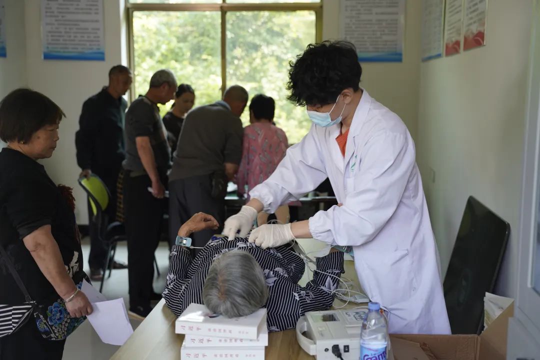 義診現場 活動現場,浦城縣山下衛生院全民健康服務團隊醫護人員為村民提供血壓、血糖檢測等基礎健康檢查,并針對常見慢性病提供專業指導。“除了平日的上門隨訪,我們每年還舉行一次大型的義診活動,為老年人提供一次免費體檢,檢測內容包括糖尿病、高血壓、慢阻肺等慢性疾病。”山下衛生院祝德斌院長說道。 隨著茶葉采收結束,許多村民返回家中,在家門口享受到了優質的醫療服務。“我們簽約的家庭醫生還會定期上門隨訪、檢查,生病了我們還可以直接電話咨詢,看病更方便了,我們心里很踏實。”村民李大哥高興地說。