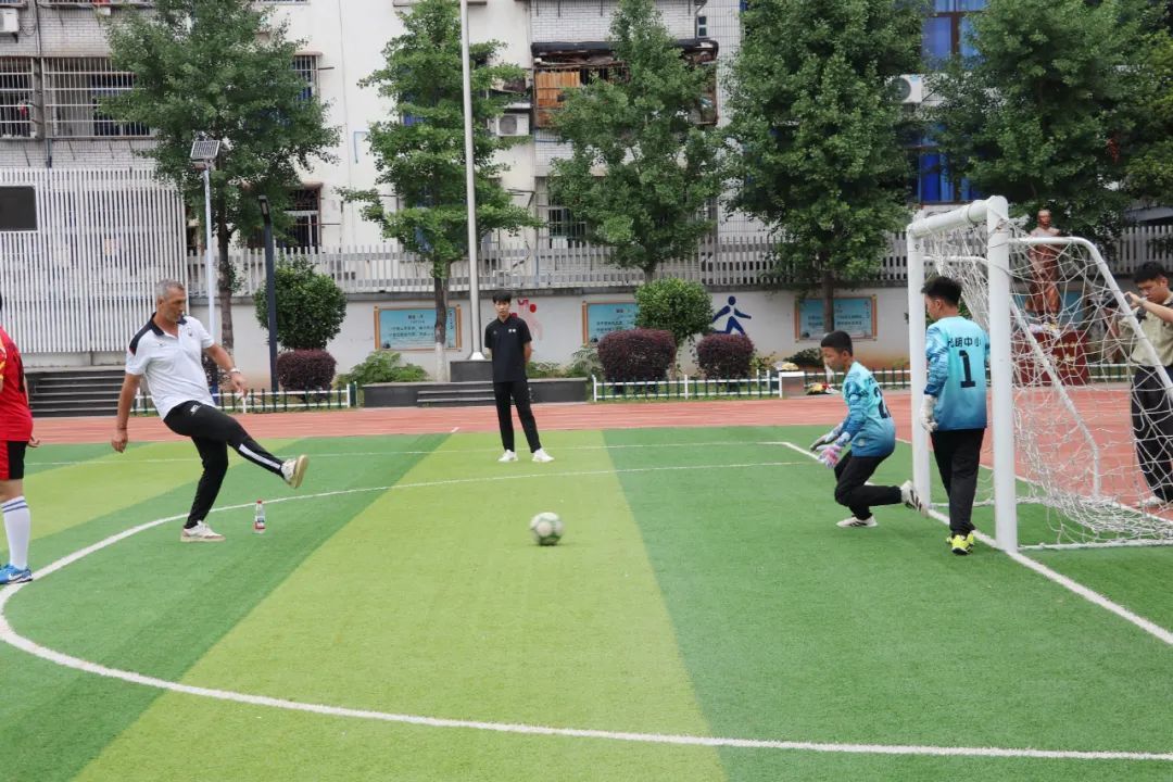 高校球員嫻熟傳接配合,小隊(duì)員們積極拼搶,守門員勇敢撲救……6月3日,浦城縣光明中心小學(xué)足球場(chǎng)內(nèi),大小球員們的精彩表現(xiàn),贏得場(chǎng)邊觀戰(zhàn)的師生們陣陣喝彩,整個(gè)校園沉浸在歡樂(lè)的足球氛圍中。