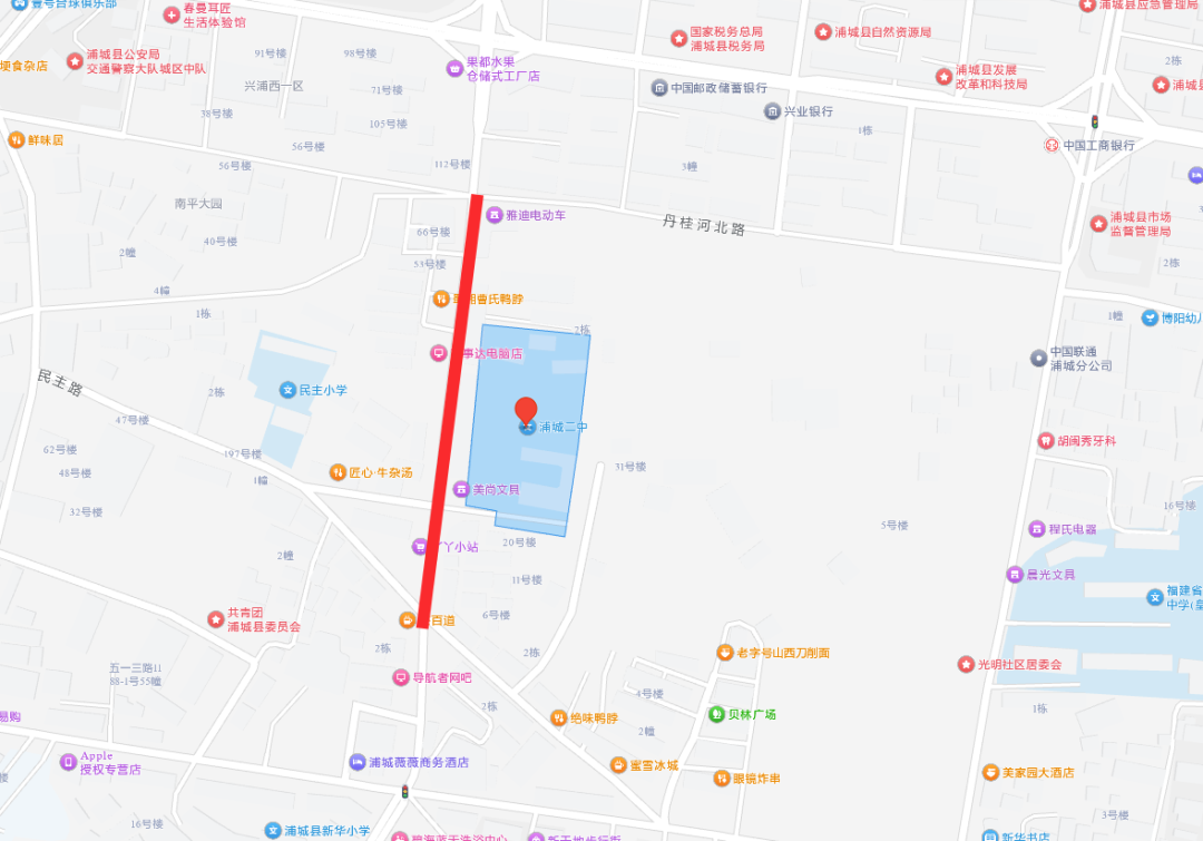 2、浦城二中考點: 南浦北路(民主路路口-環城河南)
