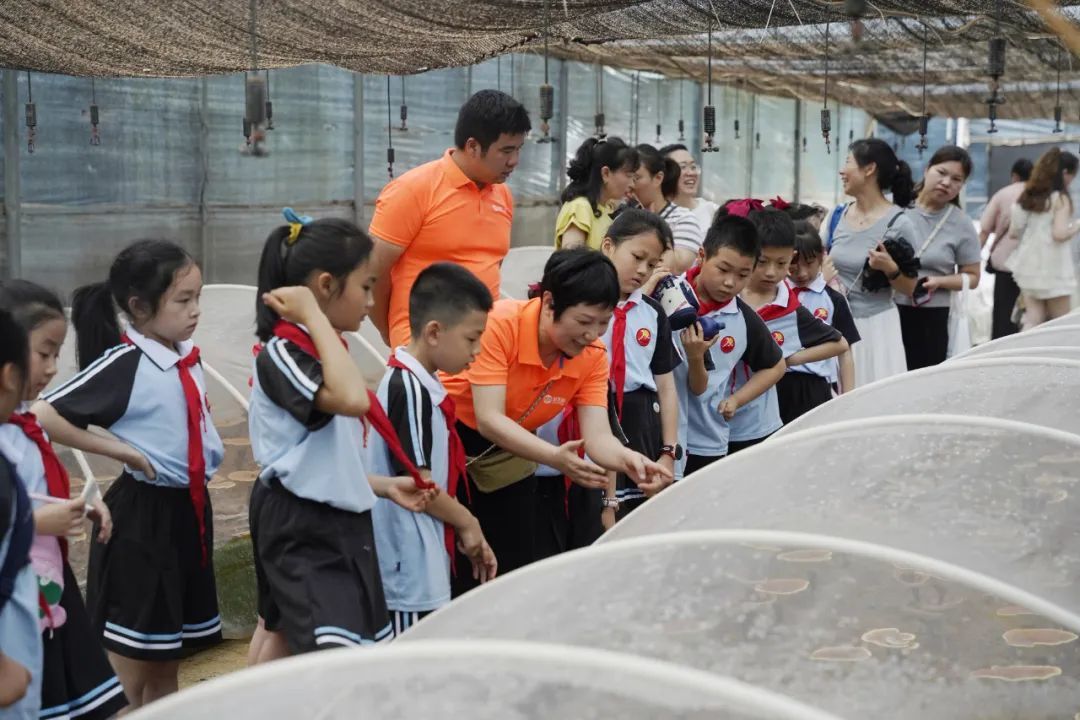 活動首站,大家來到靈芝種植試驗基地,赤芝、紫芝、韓芝等形態(tài)各異的靈芝深深吸引了孩子們的目光,孩子們湊近不同品種、處于不同生長期的靈芝,仔細(xì)觀察其模樣、紋理。工作人員耐心講解靈芝種植技術(shù)要點與注意事項,讓孩子們深刻體會到靈芝種植的艱辛與不易,在心里埋下尊重勞動的種子。 孩子們一邊認(rèn)真聆聽,一邊詳細(xì)記錄,不時還提出“靈芝有媽媽嗎?”“靈芝需要多少天才能長大?”等充滿童趣的問題。