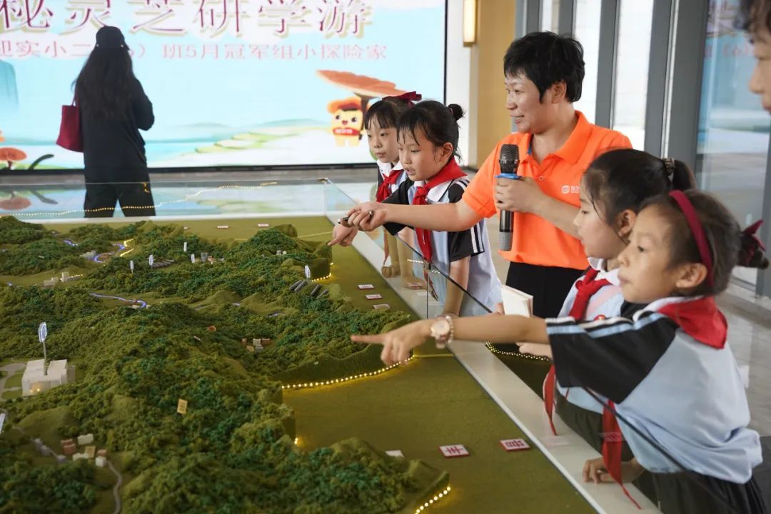 參觀仙芝樓國際交流中心 隨后,大家走進仙芝樓國際交流中心,映入眼簾的就是靈芝基地的沙盤模型,工作人員通過沙盤模型,向師生家長與孩子們生動介紹了靈芝的生長環(huán)境與基地選址的嚴(yán)苛標(biāo)準(zhǔn),紛紛感嘆道:“原來靈芝選擇住的地方要求這么嚴(yán)格?”在學(xué)術(shù)報告廳里,通過聽講靈芝科普講座和觀看靈芝科普視頻,讓大家穿越歷史,直觀了解靈芝從生長到發(fā)揮藥用價值的全過程,這種跨越千年的文化傳承,讓中醫(yī)藥智慧在孩子們心中生根發(fā)芽。
