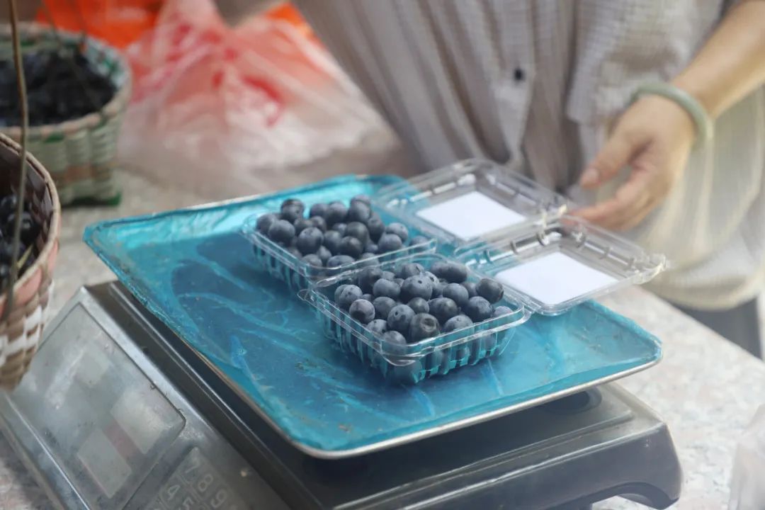 親手采摘的滿滿一籃藍莓 “我們的藍莓園嚴格按照無公害綠色農產品標準進行管理,采摘期從6月上旬持續(xù)到8月上旬,歷時近三個月。”元之藍家庭農場負責人陳貴華說。 元之藍家庭農場擁有50畝藍莓種植基地,共栽種3000株藍莓樹,每株產量可達10-13斤。農場主營業(yè)務包括藍莓種植和苗木銷售,目前新鮮藍莓的銷售價格為35元/斤。