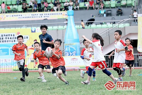 圖為U8觸式混合組:洛陽燎原象橄欖球俱樂部VS福州麥霸U8橄欖球隊 東南網(wǎng)7月13日訊(本網(wǎng)記者 顏財斌 通訊員 張凝 文/圖)7月12日,第十三屆海峽青年薈·第十屆海峽兩岸(福建)青年英式橄欖球交流賽、2025年全國觸式橄欖球分區(qū)賽(福州站)在福州舉行,也是福州地區(qū)連續(xù)四年舉辦全國性的橄欖球賽事。 2025年全國觸式橄欖球分區(qū)賽(福州站)由中國橄欖球協(xié)會主辦。本次賽事形式多樣、參與廣泛,規(guī)則上涵蓋了撞式、觸式和腰旗等多種賽制;年齡上從5歲直達75歲,設(shè)立了從幼兒、小學(xué)、中學(xué)到成年隊伍等多個組別。來自福建、臺灣以及浙江、山東、重慶等地超過60支隊伍、1000多名運動員登場競技,是兩岸橄欖球交流賽史上參與人數(shù)規(guī)模最多的賽事,也是福建地區(qū)規(guī)模最大的全國性橄欖球賽事。