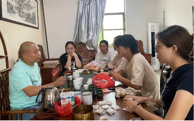 實踐隊與相關人員進行訪談 實踐隊首先與當地薏米產業從業者進行了深度交流。信源薏米合作社理事長廖小洪向隊員們詳述了合作社發展歷程,從幾戶農戶的小規模種植到形成種植、加工、銷售產業鏈的蛻變,也坦言當下薏米市場推廣與品牌建設遭遇到的瓶頸。隊員們還走訪了官鷺薏米酒業,了解薏米酒釀造工藝與銷售情況。負責人黃盛德說,自己的初心就是做一款“讓老百姓都喝得起的酒”。小隊還與村民、干部交談,在交流中拼湊出官路薏米產業全景圖,了解官路薏米傳統種植歷史與政府扶持相關政策。