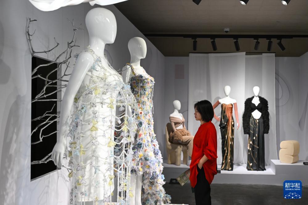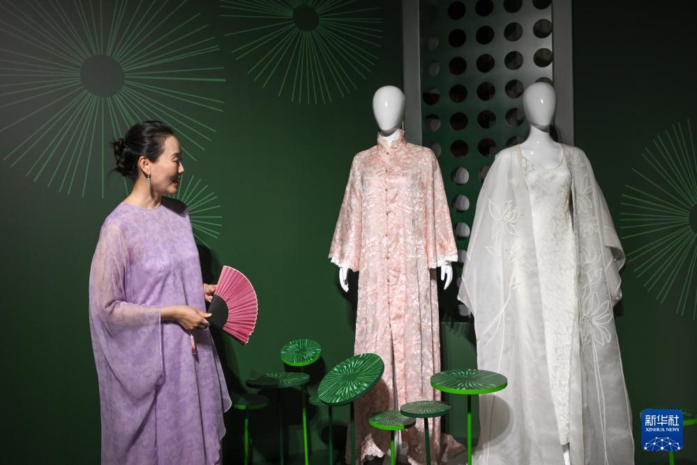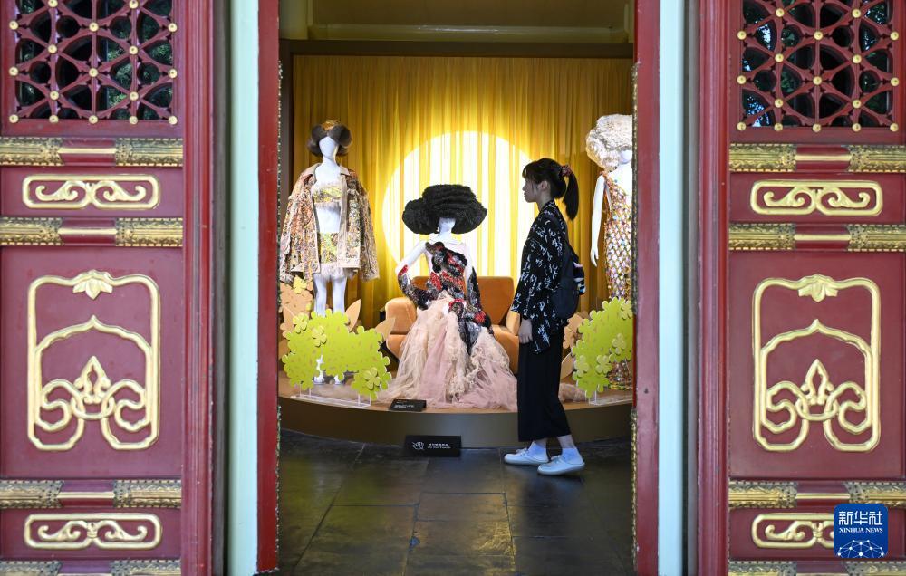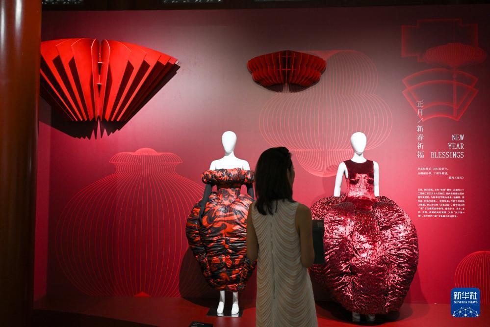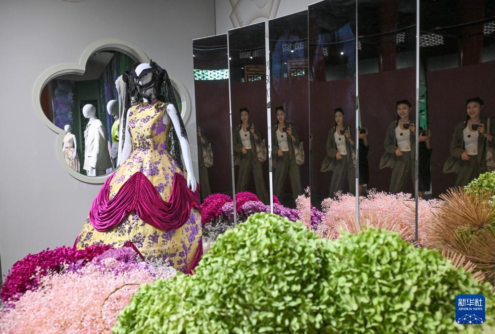 7月21日,嘉賓參觀展覽。 由文化和旅游部恭王府博物館主辦的"精雅風華:恭王府與中國時尚(1780-2025)"展覽將于7月22日起在北京恭王府嘉樂堂展出。 據了解,展覽以"恭王府與十二風雅"為主題,將王府的四季美學、節氣儀典與當代時尚相結合,展出近50件服裝以及藝術、家居、手工藝等展品。 新華社記者 金良快 攝