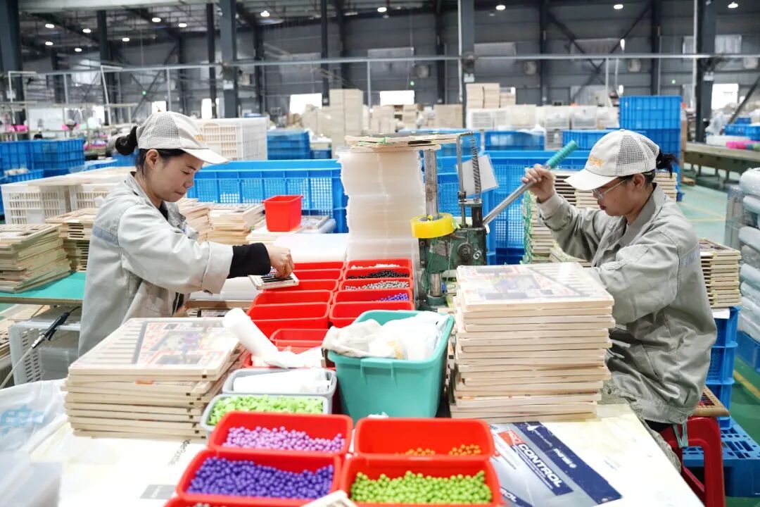 車間工人正在組裝玩具產品(資料圖片) 穩健的員工福利管理制度助力企業發展。“近年來,我公司零售終端銷售的200余款產品,一次驗收合格率始終保持在95%以上。”企業相關負責人說,面對市場新趨勢,銘塔玩具于2024年注冊新品牌“嘰谷舍”,該品牌專注于木制潮玩賽道,將木制工藝與二次元文化相結合,并成功獲得“蠟筆小新”IP授權。今年6月推出的木制徽章、金屬徽章、卡牌冰箱貼、木制掛鏈等系列產品,既保留了原木的溫潤觸感,又通過數控精雕技術實現了IP形象的精準還原,首批產品已經在全國各大終端以及IP垂直直播間陸續上市,預計半年內銷售額逾千萬元。