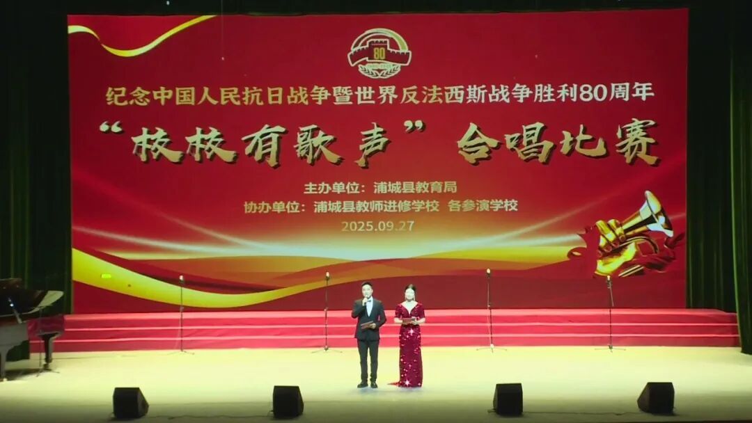 9月28日,由浦城縣教育局主辦,浦城縣教師進修學校、各參演學校協辦的紀念中國人民抗日戰爭暨世界反法西斯戰爭勝利80周年“校校有歌聲”合唱比賽在浦城縣大劇院舉行。