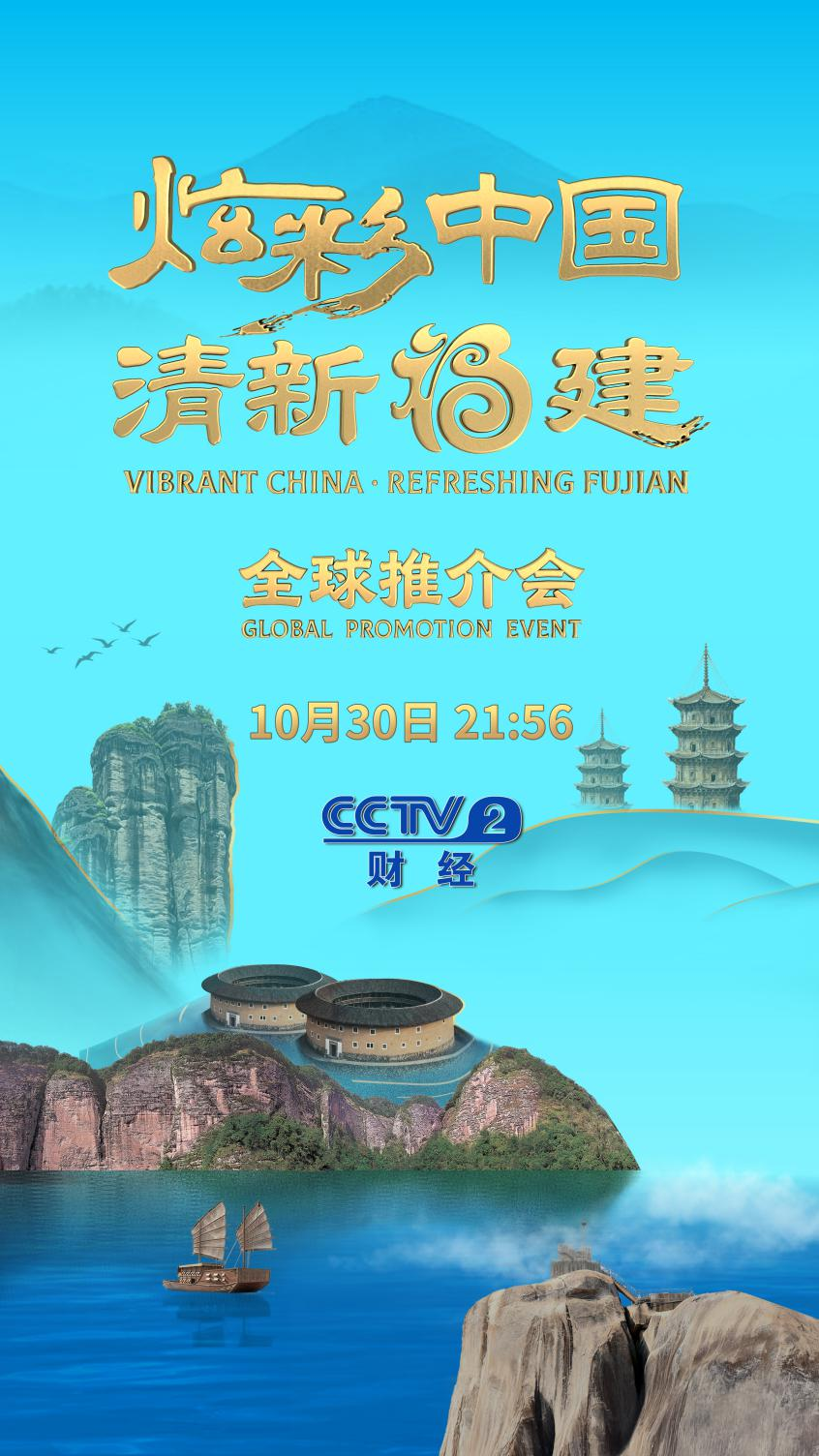由中央廣播電視總臺與 福建省人民政府聯合主辦的 “炫彩中國·清新福建” 全球推介會的精編版一一 《炫彩中國 清新福建》節目 將于10月30日21:56檔 在總臺央視財經頻道(CCTV-2)播出 將帶您感受“清新福建”的 山水之美、人文之美、煙火之美