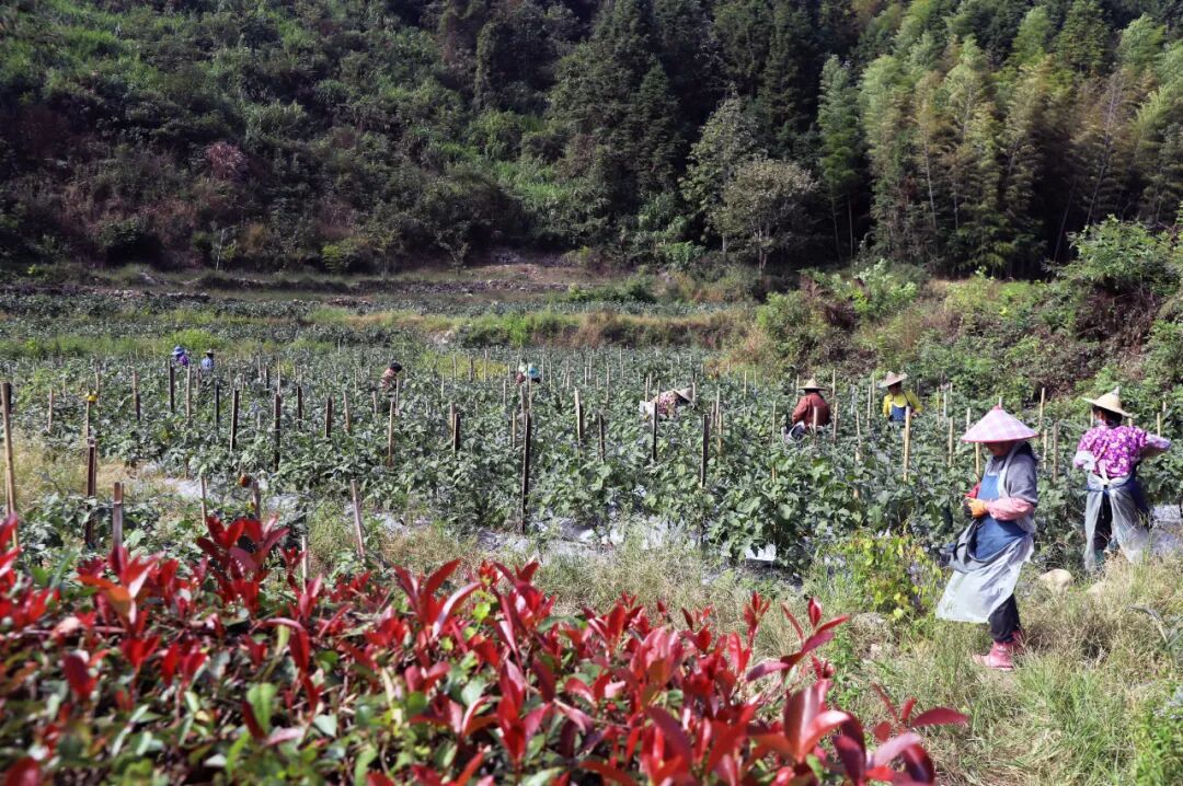 眼下,管厝鄉黨溪村的70余畝茄子喜迎豐收。10月29日,連片的田地里,村民們正忙著采收,紫亮的茄子于翠綠的葉片間若隱若現。不遠處的棚子下,幾位村民正熟練地將剛摘的茄子分揀、裝箱,準備發往浙江龍泉等地。這片6月初開始采摘的茄子地,將持續至11月中旬,預計總產量60余萬斤。