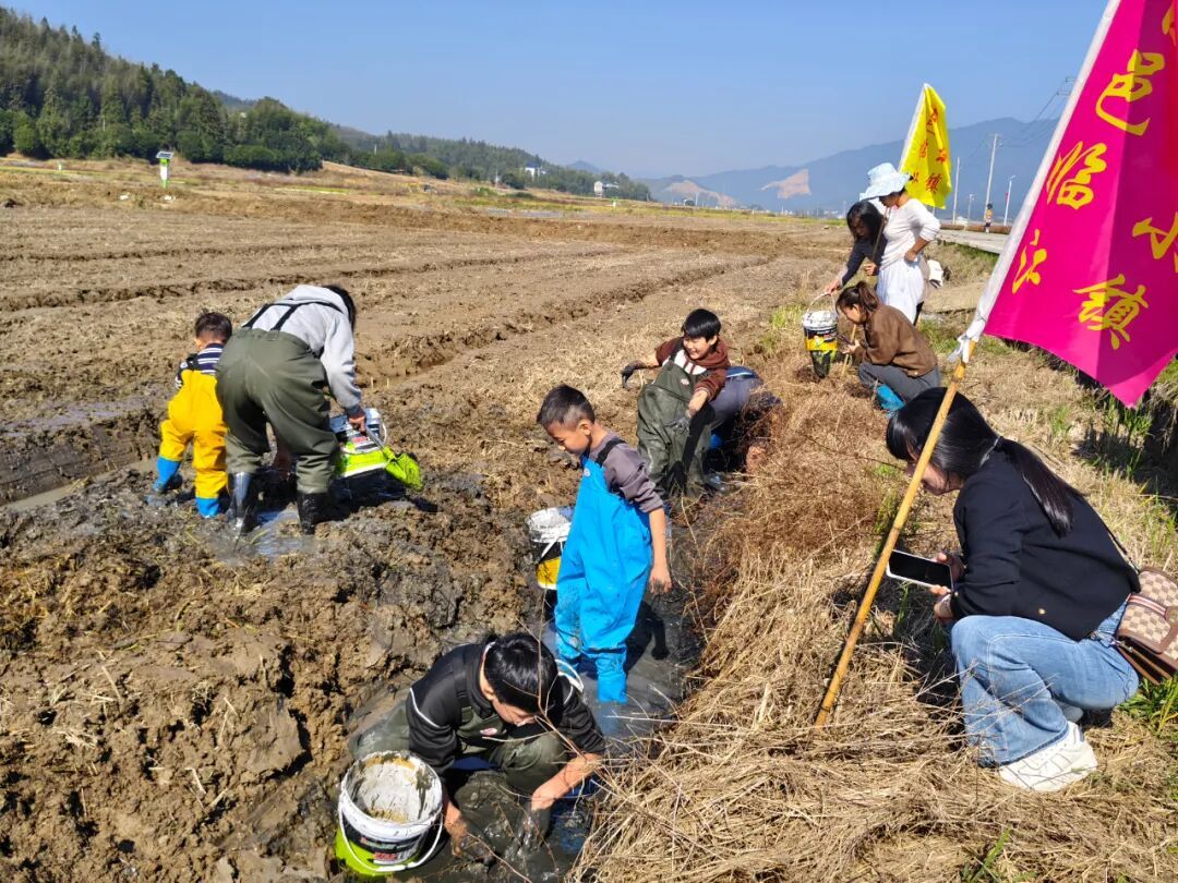 11月16日,“趣玩稻田間·螺鰍伴成長”臨江鎮“稻+N”實踐之旅自然探索活動在臨江鎮萬鑫家庭農場的300畝種養試驗田里舉行。