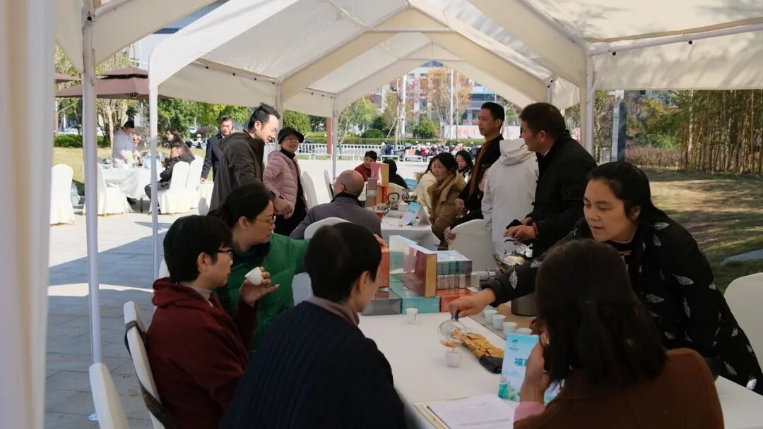 活動(dòng)現(xiàn)場(chǎng) 來(lái)往群眾親身感受丹桂花茶茶香與桂香完美交融的獨(dú)特風(fēng)味,了解“浦城丹桂花茶”公共品牌背后的故事與發(fā)展,與愛(ài)茶之人共品香茗,分享感受。同時(shí),現(xiàn)場(chǎng)更有浦城丹桂花茶制作技藝、丹桂花茶窨制技藝非遺代表性傳承人參加活動(dòng),講述制茶背后的點(diǎn)滴趣事。江山市“田園翁·興農(nóng)”科技服務(wù)團(tuán)組織30余名老農(nóng)技專(zhuān)家、茶葉經(jīng)營(yíng)主體及青年農(nóng)創(chuàng)客參與活動(dòng),欣賞茶藝展演,細(xì)品丹桂花茶,與浦城茶商深入交流,借鑒浦城的科學(xué)制茶工藝、茶文化傳承路徑及“茶+文旅”融合發(fā)展模式,為江山農(nóng)旅融合發(fā)展汲取經(jīng)驗(yàn)。