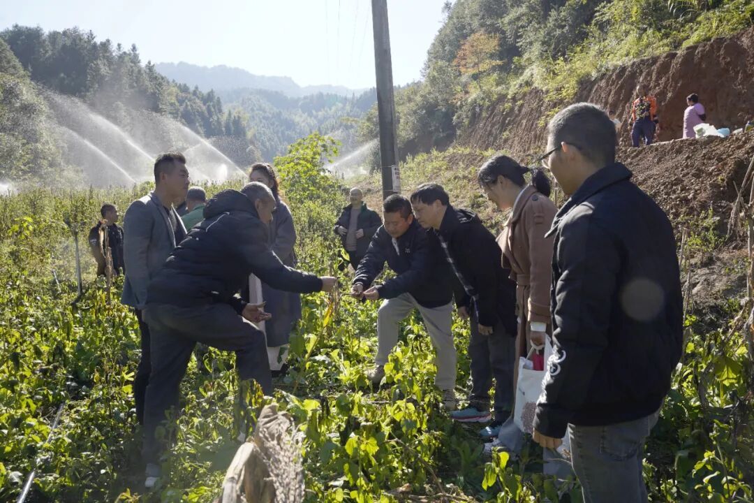 現(xiàn)場(chǎng)講解黃精種植技術(shù) 伴隨著山壟田泥土芬芳,30余畝黃精在陽(yáng)光下舒展,黑色的噴灌管道在田間有序鋪展,細(xì)密的水珠正均勻?yàn)⒙湓谔镩g。劉福陽(yáng)俯身在田間,不時(shí)撥開(kāi)土壤查看根系生長(zhǎng)情況:“黃精喜濕但怕澇,山壟田坡度大、排水快。噴灌能精準(zhǔn)控制每畝地的用水量,還能避免根系腐爛,尤其是今年下半年干旱期,通過(guò)噴灌保障了水分供給,極大減少了人工成本。后續(xù)還是要做好田間的管理,施加有機(jī)肥,確保黃精的生長(zhǎng)?!?/span> 觀摩人群中,后洋上篷家庭農(nóng)場(chǎng)負(fù)責(zé)人李福榮蹲在田埂上,指著長(zhǎng)勢(shì)喜人的黃精向眾人介紹,“以前全靠天吃飯,旱天澆不透、雨天澇死苗,黃精管理全靠人工。多虧劉老師建議加裝噴灌系統(tǒng),現(xiàn)在我在家門口點(diǎn)開(kāi)APP,手指一滑就能開(kāi)始澆水,都不用下田呢。”說(shuō)完,他上前拉住劉福陽(yáng)請(qǐng)教黃精深加工問(wèn)題,專家當(dāng)場(chǎng)給出了建議。