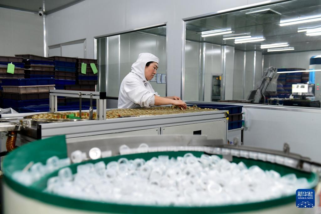 11月27日,在鄆城縣丁里長街道煙鄆科技產業園,工作人員在瓶蓋生產設備前忙碌。 近年來,山東省菏澤市鄆城縣丁里長街道鏈條式、集群化發展酒類包裝產業,并將采煤塌陷區綜合治理與發展特色養殖業相結合,不斷通過產業興旺助推鄉村振興。 新華社記者 郭緒雷 攝