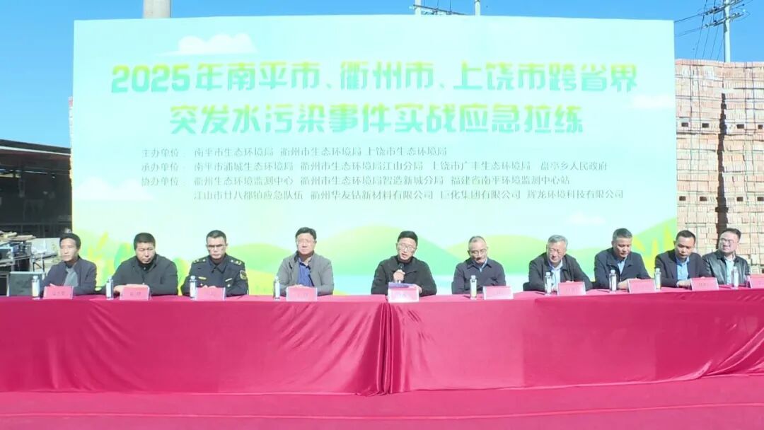 南平市、衢州市、上饒市跨省界突發水污染事件實戰應急拉練 南平市浦城縣盤亭溪地處閩浙贛三省交界,作為信江源頭之一,其水質安全直接關系長三角南翼數百萬居民的飲水安全。這里不僅是生態敏感區,更是跨省環境風險防控的“前沿陣地”。提升環境應急實戰能力,及時妥善科學處置各類突發環境事件,是守牢流域環境安全底線的重要組成部分。 本次拉練模擬裝載30噸柴油的罐車在閩浙交界路段發生交通事故側翻后,南平浦城、衢州江山、上饒廣豐共同應對次生突發環境事件的過程。拉練中,交通事故導致柴油進入353國道周邊水體盤亭溪,威脅到下游衢州-南平跨省界斷面及靖安大橋國控斷面水質。通過上下游協同、跨地區聯動、多部門協作,綜合采取源頭阻斷、攔污截污、水利調度等多種措施后,確保了污染水體未流入上饒市,未造成跨省污染。