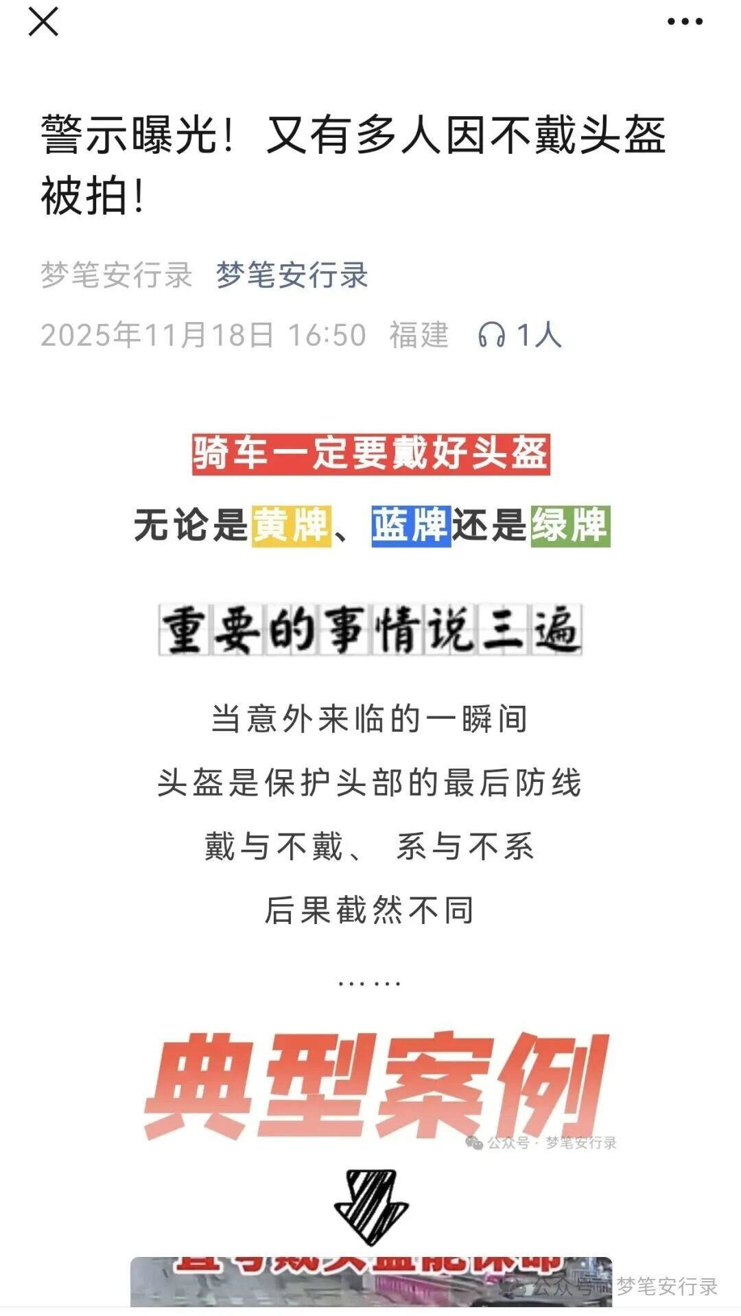 “頭盔是騎行者遇到危險時的最后一道防線。”為進一步提升電動車騎乘人員安全防護水平,浦城公安交警持續(xù)加強“一盔一帶”安全守護行動。 對于“戴了頭盔卻不戴”的行為,進行重點糾正,督促其立即佩戴。對于多次勸導無效或拒不配合的,依法予以處罰。引導群眾養(yǎng)成“不帶盔,不騎行”的文明出行習慣。 優(yōu)化交通設施 提升道路通行安全